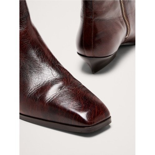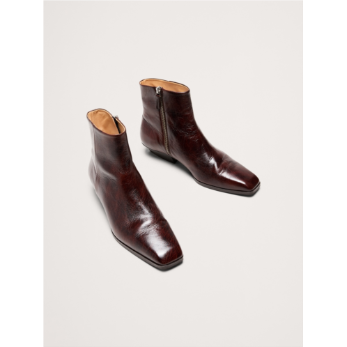- Our sleek take on the season's ankle boot silhouette, we opted here for a squared-toe and minimalist stylingthe better to show off the beautiful Italian leather. Plus, we kept the heel height modest for everyday comfort.