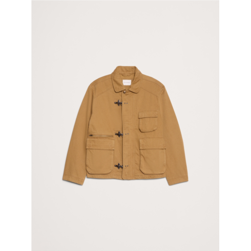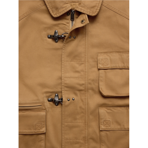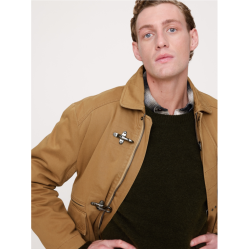 - Inspired by a vintage piece, this jacket mimics the details of an old fireman's coat with its hefty cotton twill fabric and the rugged clasp closure. Plus, we added a plethora of pockets at the front for true utility vibes.