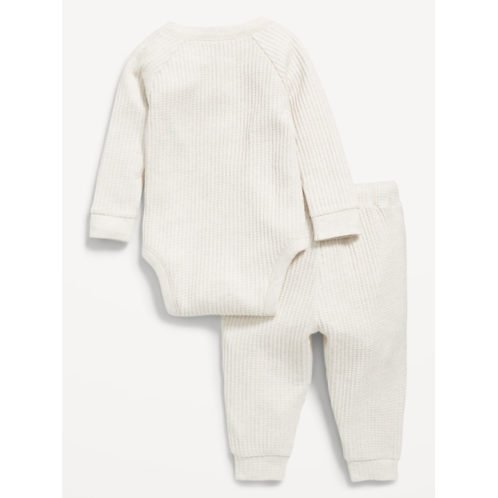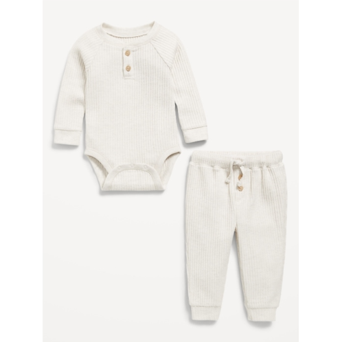 [US] OldNavy Long-Sleeve Thermal-Knit Henley Bodysuit and Pants Set for Baby