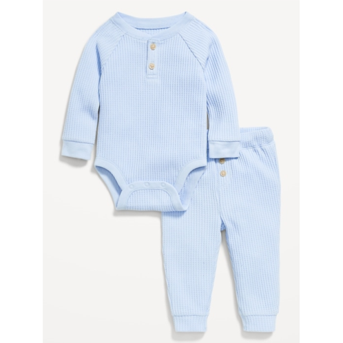 [US] OldNavy Long-Sleeve Thermal-Knit Henley Bodysuit and Pants Set for Baby