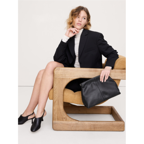 - A streamlined silhouette shows beautifully showcases the leather or suede used to craft this versatile clutch bag.