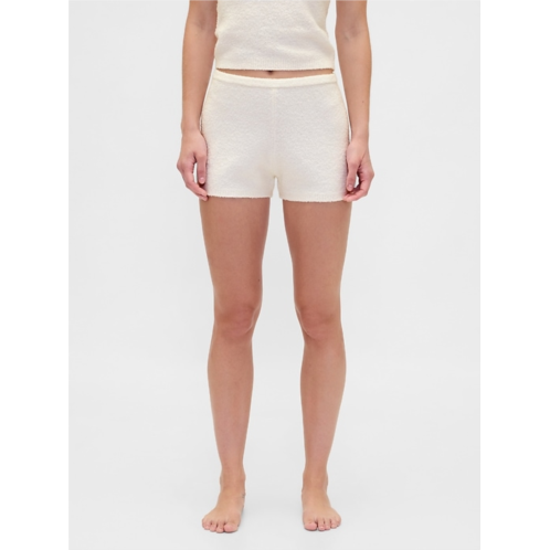 - Supersoft boucle knit sweater lounge shorts.