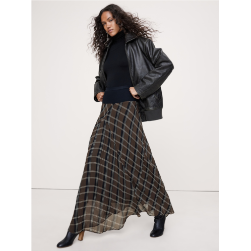 - Not your average maxi skirt, we cut this one from a light-as-chiffon fabric, opting for a paneled construction to create an asymmetrical hemline that moves with every step. Plus, we added a ribbed-knit waistband for a super-smooth and comfortable fit.