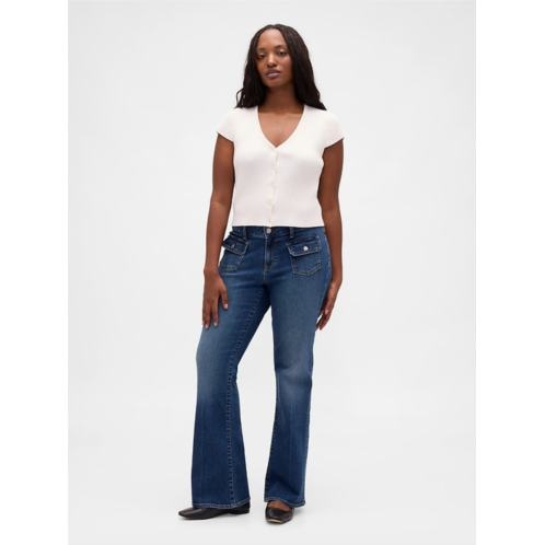 - Details: Zip fly, front button flap patch pockets, & back patch pockets.