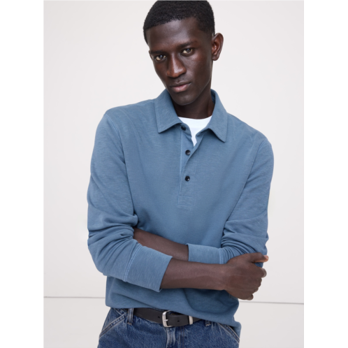 - A customer favorite, now in a long-sleeve polo. Our Double-Knit fabric is made from a blend of organic cotton that we love for its incredible softness and its ability to serve as either a first or second layer.