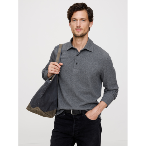 - A customer favorite, now in a long-sleeve polo. Our Double-Knit fabric is made from a blend of organic cotton that we love for its incredible softness and its ability to serve as either a first or second layer.