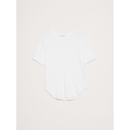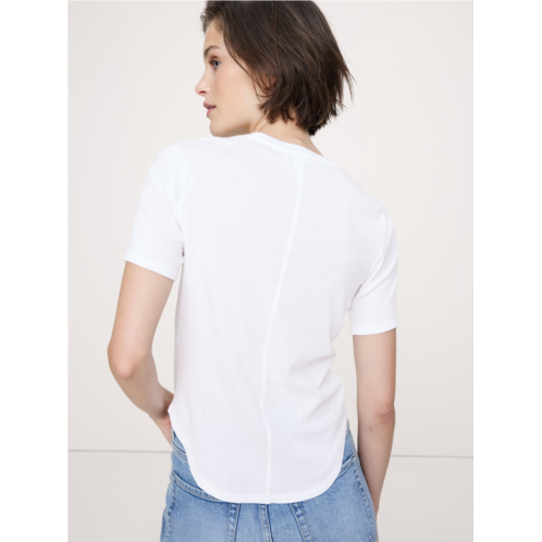 - Luxurious and a little slinky, this tee has a super-subtle ribbed knit texture which gives it body-hugging stretch in lightweight, 100% cotton (so it's perfect for all seasons). Plus, we added a seam at the center-back to better define the waist.