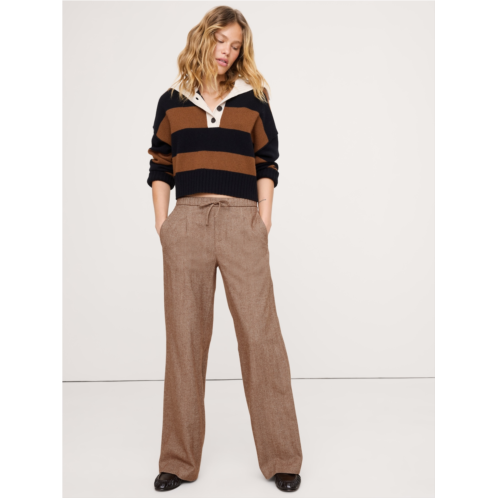 [US] Bananarepublic Wide-Leg Flannel Drawstring Pull-On Pant