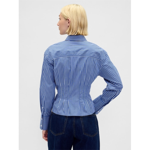 - Smooth poplin cotton fitted button-down shirt. In a slightly cropped length.