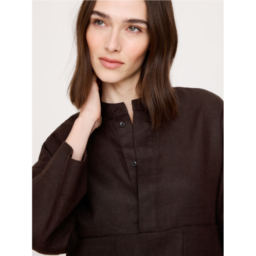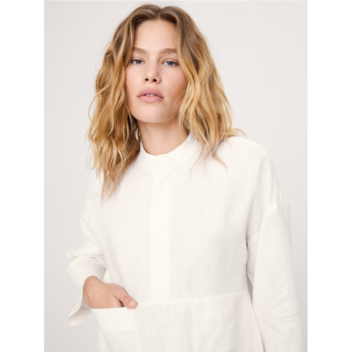 - A utilitarian popover silhouette, crafted in all-weather, 100% certified European flax linen.
