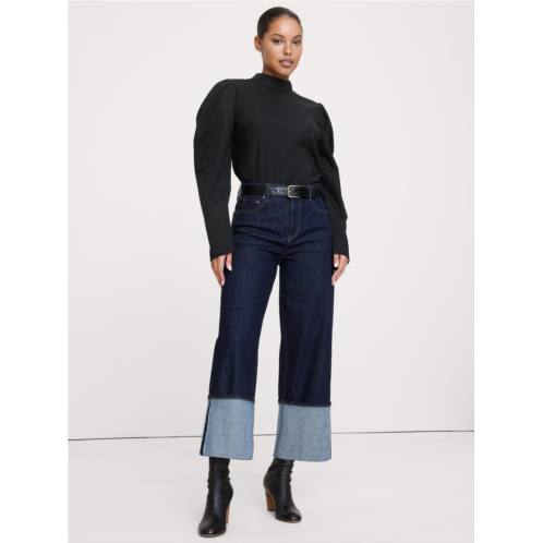 [US] Bananarepublic Stretch-Cotton Puff-Sleeve Top