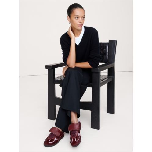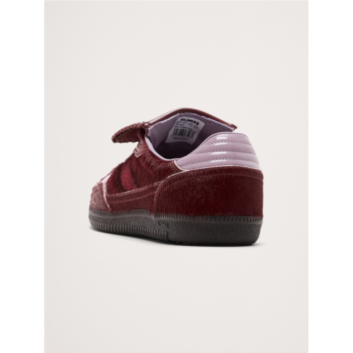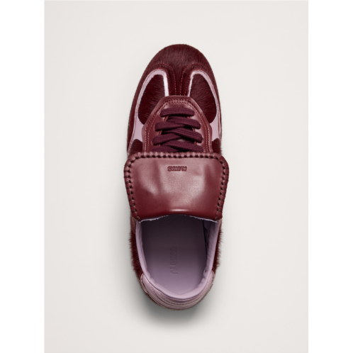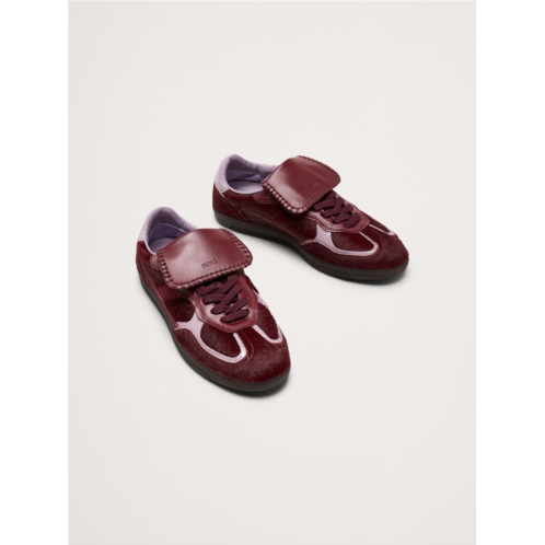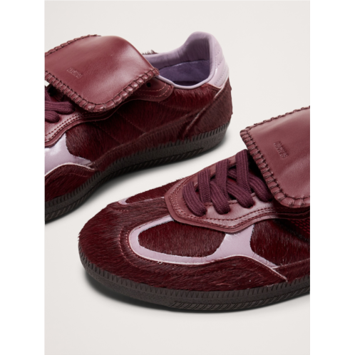 - Reminiscent of classic soccer shoes, these sneakers are crafted from haircalf leather traced with contrast leather trims. Designed in a low-top silhouette sitting on rubber soles, it’s complete with exposed stitching and the logo embossed across the tongue and sides.