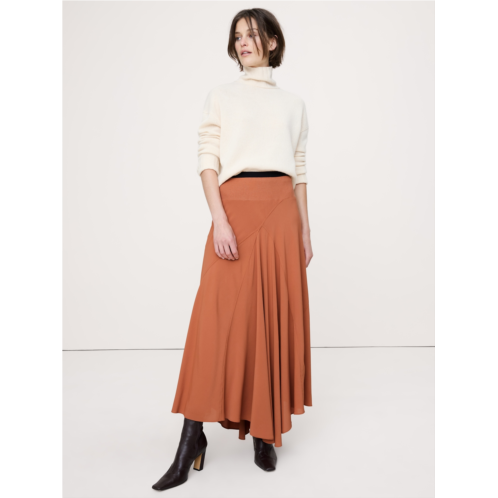 - Not your average maxi skirt, we cut this one from a light-as-chiffon fabric, opting for a paneled construction to create an asymmetrical hemline that moves with every step. Plus, we added a ribbed-knit waistband for a super-smooth and comfortable fit.