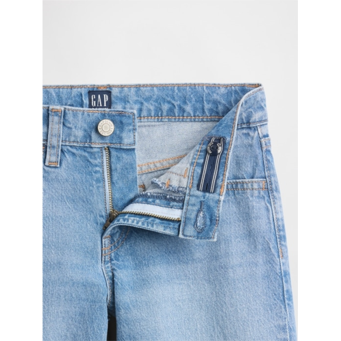 - Button at center (sizes 4-8 have a hook & bar closure beneath faux snap for easy on and off), zip fly.