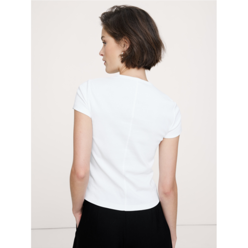 - Luxurious and softly structured, this 100% cotton tee is the perfect weight for all seasons. Plus, we added a seam at the center-back to better define the waist.