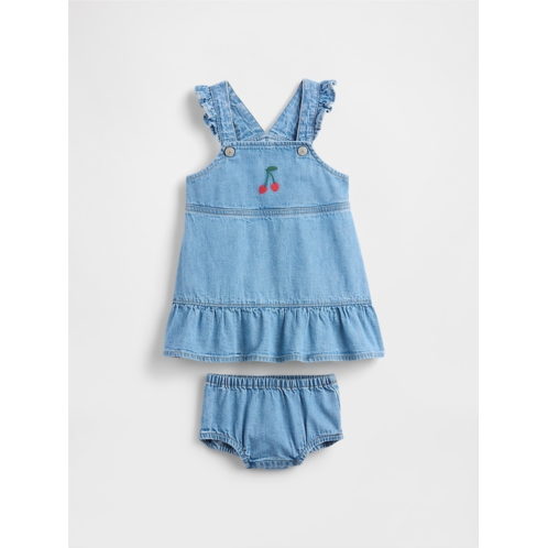 - Soft cotton denim dress and diaper cover two-piece outfit set.