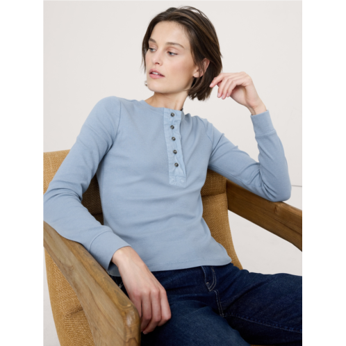- This soft, ribbed henley nods at a style from the BR archives with a poplin accent at the button placket. Each piece is garment-dyed for lived-in color and already-loved softness.