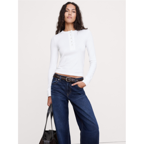 [US] Bananarepublic Ribbed Long-Sleeve Henley T-Shirt