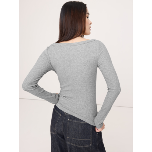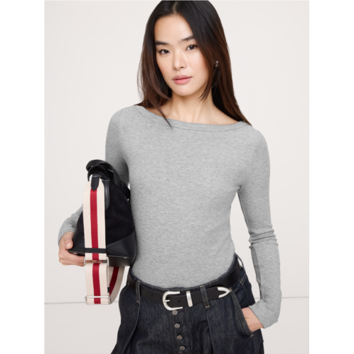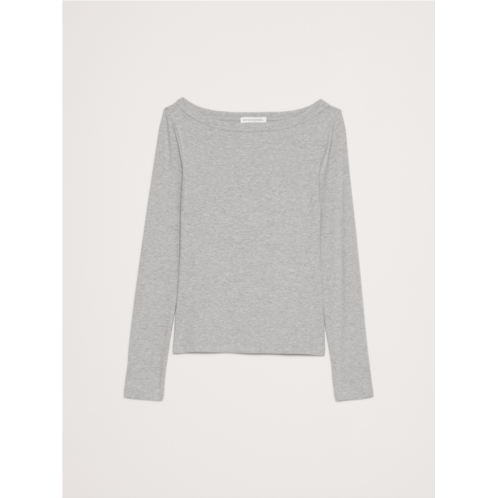 - This cute boat-neck top is cut from our stretchy ribbed jersey, which mixes cotton and modal for an even-softer handfeel.