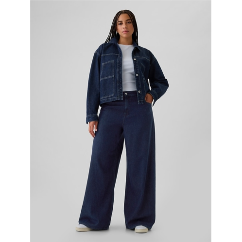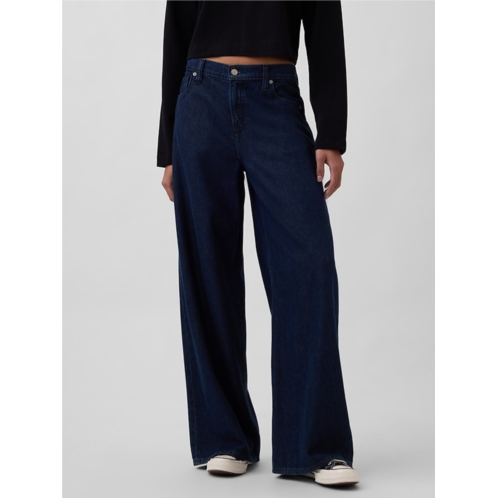 Look:A five-pocket baggy jean in a dark indigo wash.