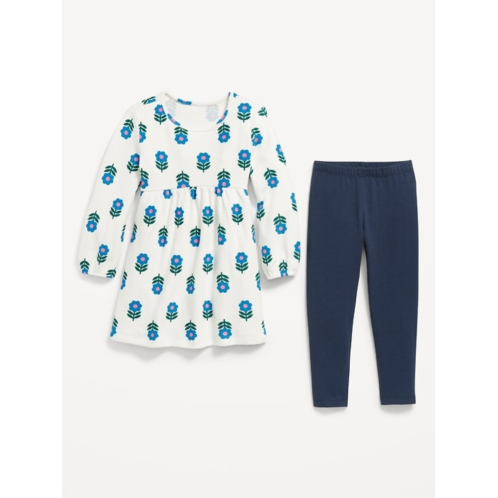 [US] OldNavy Long-Sleeve Waffle-Knit Dress and Leggings Set for Toddler Girls