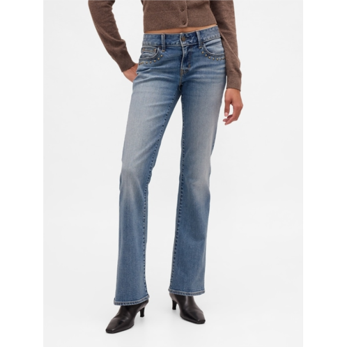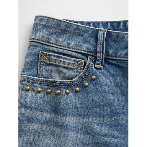 - Details: Zip fly, five-pocket styling with metal studs at front scoop pockets.