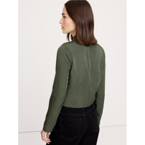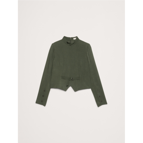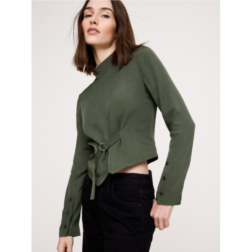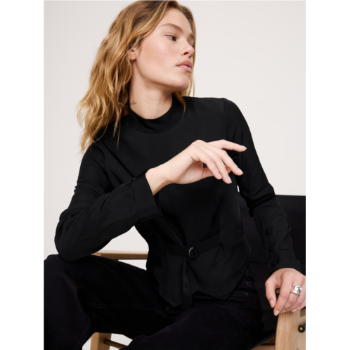 - A nod to our heritage of utility, we added a slider belt to the front of this sleek mock-neck top. Crafted in a drapey shirting fabric we love for its beautiful drape and softness.