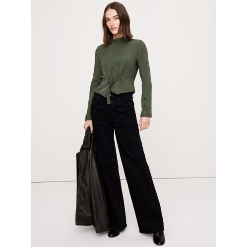 - A nod to our heritage of utility, we added a slider belt to the front of this sleek mock-neck top. Crafted in a drapey shirting fabric we love for its beautiful drape and softness.