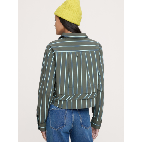 - A classic with a twist, we added a ruffle detail to the back of this timeless cotton poplin shirt, in a slightly shorter length.