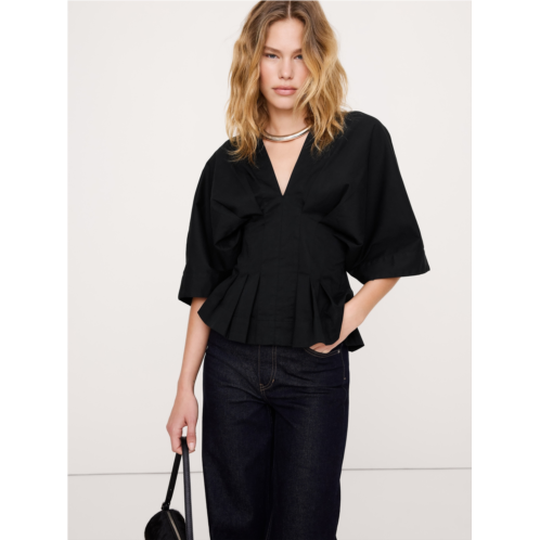[US] Bananarepublic Stretch-Cotton Pleated Top