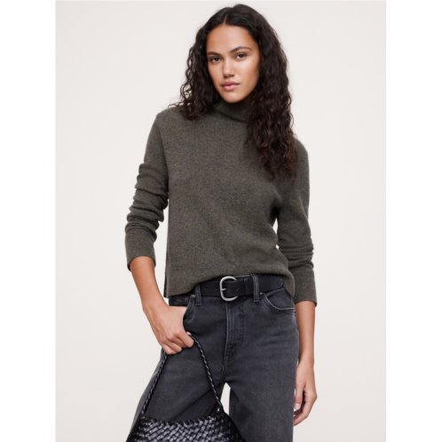 - The vibe here is relaxed, yet put-together. We cut this turtleneck sweater with a bit of ease, adding a little length to the sleeves for a slouchy look. To make it luxe, we selected our signature midweight cashmere yarn so it's ideal in cooler seasons.