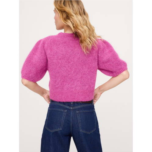 - Defined by feminine puffed sleeves, this classic crew-neck sweater is cut to show off the delightfully fuzzy texture of its fabrica favorite for its luxurious texture and blend of warm alpaca.