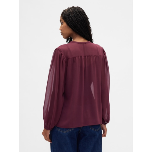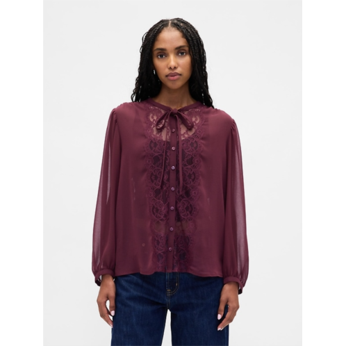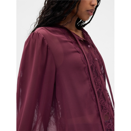 [US] Gap Sheer Recycled Lace Inset Tie-Neck Top