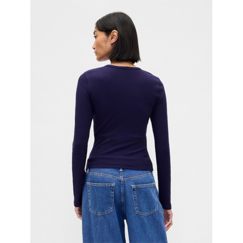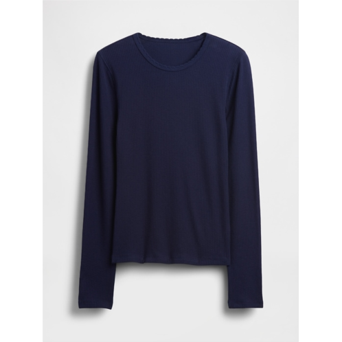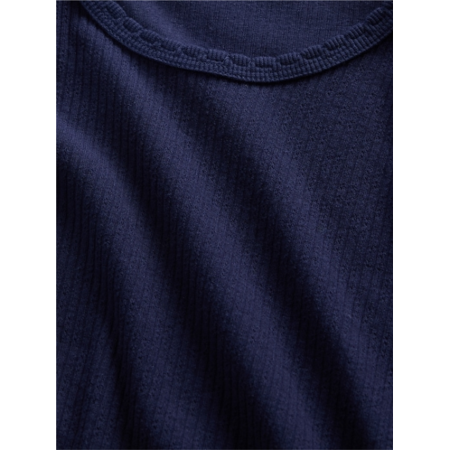 - Soft, stretch pointelle ribbed knit T-shirt. In a slightly cropped length.