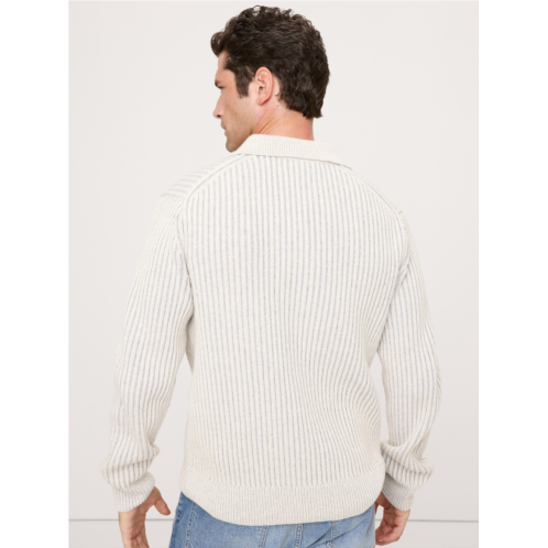 - So soft, so cozy, we love this classic sweater polo because it's got Merino wool for warmth and cotton for breathability. Here, we used a plaited yarn to create a two-color effect to accentuate the ribbed-knit texture.