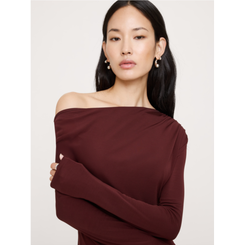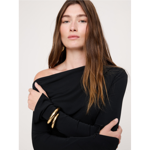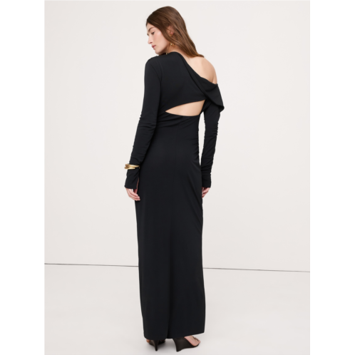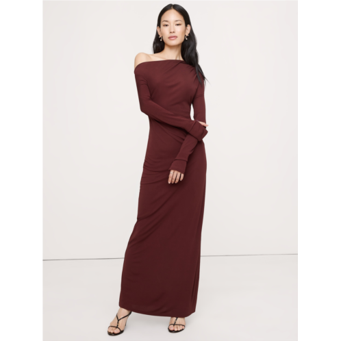 - Cut from a stretchy matte jersey, this maxi dress feels as effortless as a T-shirt but looks more dressed-up thanks to an off-shoulder neckline and cut-out detail at back.