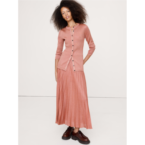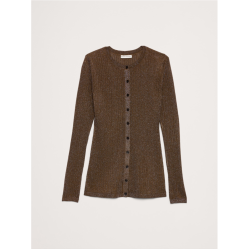 - This sleek cardigan is knitted using a subtly metallic yarn, enhanced by rib-knit stitches to enhance its figure-hugging silhouette.