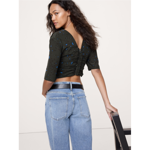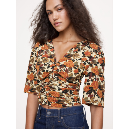 - A cute cropped top with a ruched front, cut from our signature silk crepe de chine. Did we mention it's machine washable?