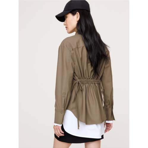 - A very cool shirt. We cut this one in an oversized fit from a wool-blend flannel and added a drawstring detail at the back to define your waist.