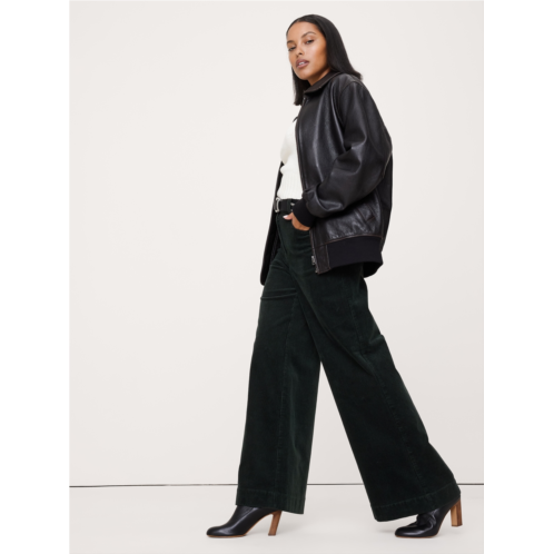 - We took the silhouette of our favorite high-rise wide-leg jeans and reimagined them in cold-weather ready corduroy. Plus, we added a fully functional fly and some hidden elastic at the back waist for a custom fit.