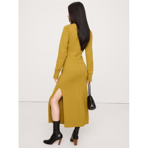 - We're dreaming of a warm sweater dress to carry us through cool weather. Enter, this maxi wrap dress, knitted in soft blend of Merino wool and certified-organic cotton, with a tie waist and side slit.
