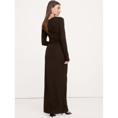 - Quite the gathering. This figure-hugging maxi dress is cut from our best-selling matte jersey knit (so it's t-shirt soft and looks fab), here with ruching at the sides and a slash neckline.