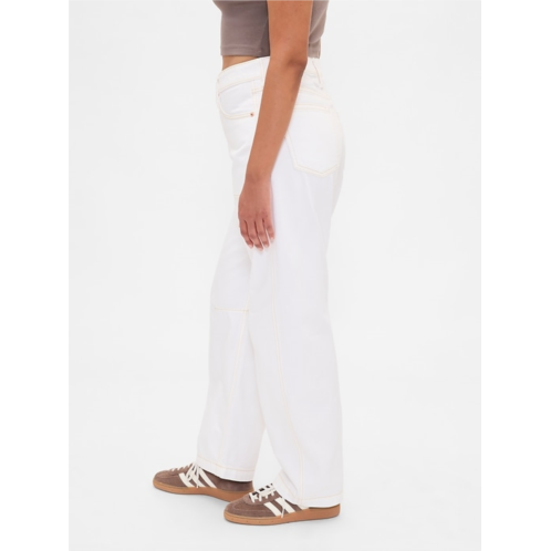 - Fit: A full-length barrel jean that's fitted at the waist with a relaxed leg and tapered ankle.