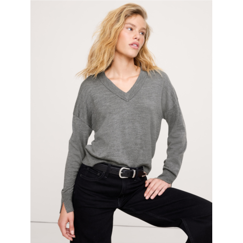 - Looks good, feels good. A slouchy v-neck sweater, crafted in beautifully warm and soft Merino wool, produced according to the NATIVA Wool protocol.