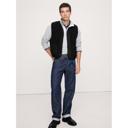 - Cozy, contemporary, cool. We cut this vest in a relaxed silhouette (so it's easy to layer) in our favorite sherpa fabric.