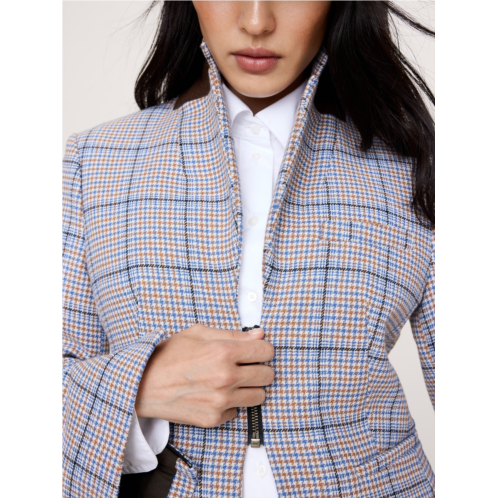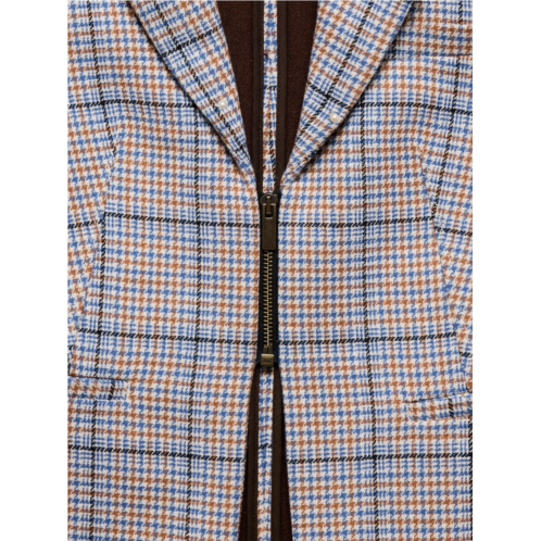 - A playful take on a structured blazer, we reached for a beautiful houndstooth plaid fabric from Italy, adding a zip front closure and zips at the cuffs. Leave the cuffs unzipped to let your shirt cuffs peek through.