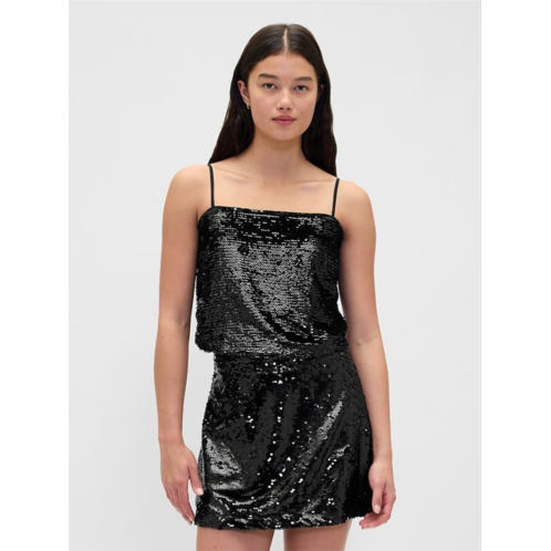 - Sequin camisole top in an ultra-cropped length.