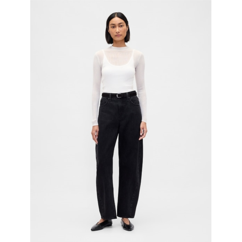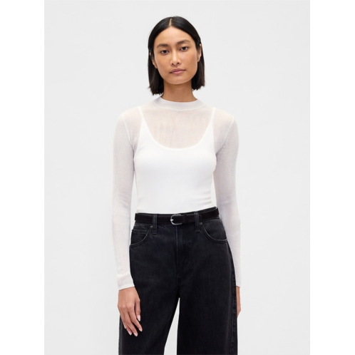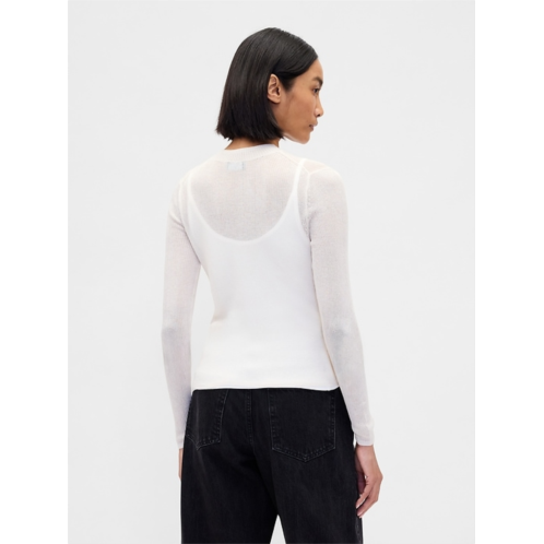 - Sheer, ribbed knit sweater. In a slightly cropped fit.