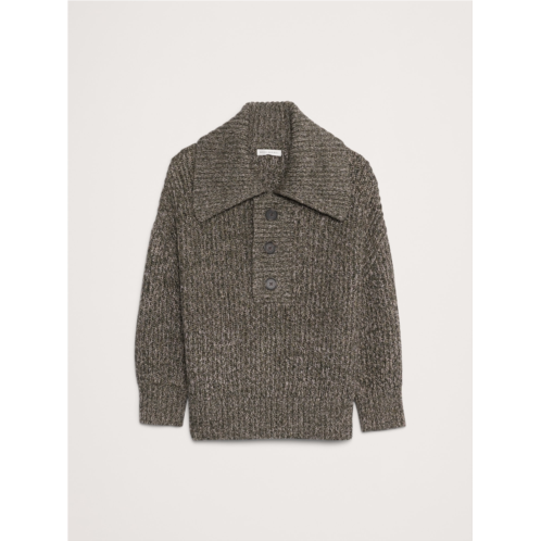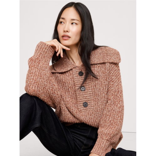 - Everything about this sweater is extra: the oversized fit, jumbo buttons, a dramatic sailor collar, and a beautiful, richly marled yarn spun from organic cotton.