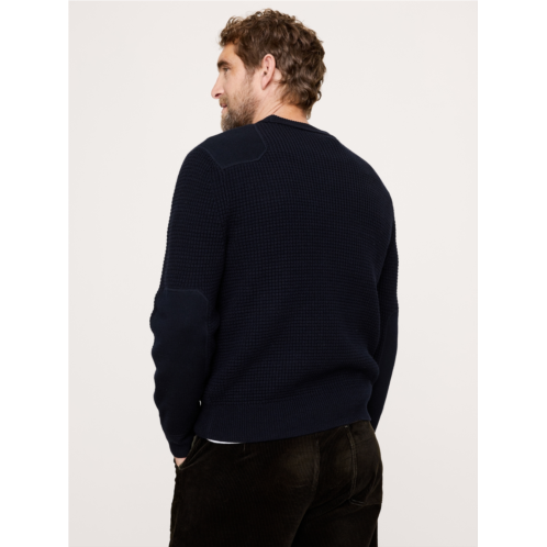 - A utilitarian twist on the classic waffle-knit sweater, this one is knitted in soft cotton and warm Merino wool with patch details at the shoulders and arms.
